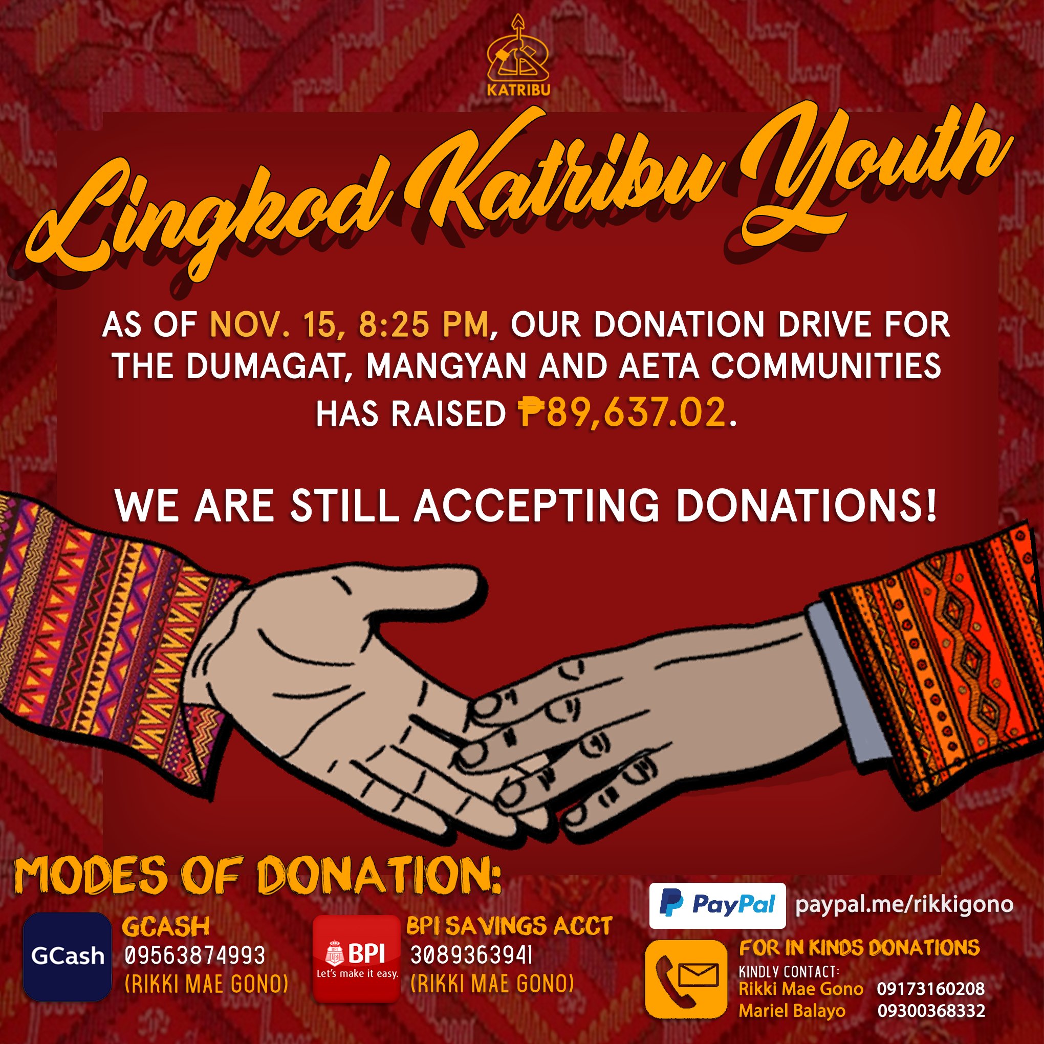 The Kabataan para sa Tribung Pilipino – UP Diliman Chapter (KATRIBU UPD) is a non-profit, non-partisan, youth oriented, university-based voluntary student organization composed of University of the Philippines Diliman students who advocate for the collective rights of the indigenous peoples of the Philippines to their ancestral lands and right to self-determination. KATRIBU UPD aims to forward the issues of the IPs of the Philippines to other sectors, especially the youth, and to be one with them in the fight for national sovereignty, freedom, and democracy. It is the official student arm of KATRIBU Philippines in UP Diliman, affiliated with different KATRIBU Chapters in Metro Manila.